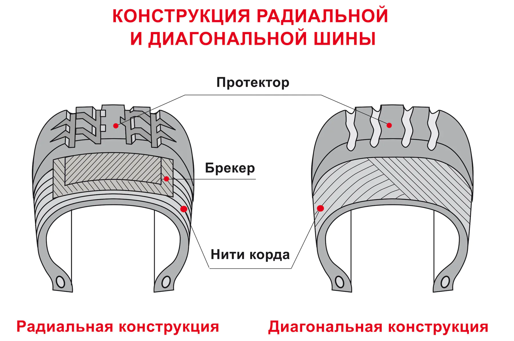 - буква R означает, что в данной покрышке (довольно часто ее путают с обозначением радиуса), также бывает и диагональный тип корда – D, но он встречается довольно редко;