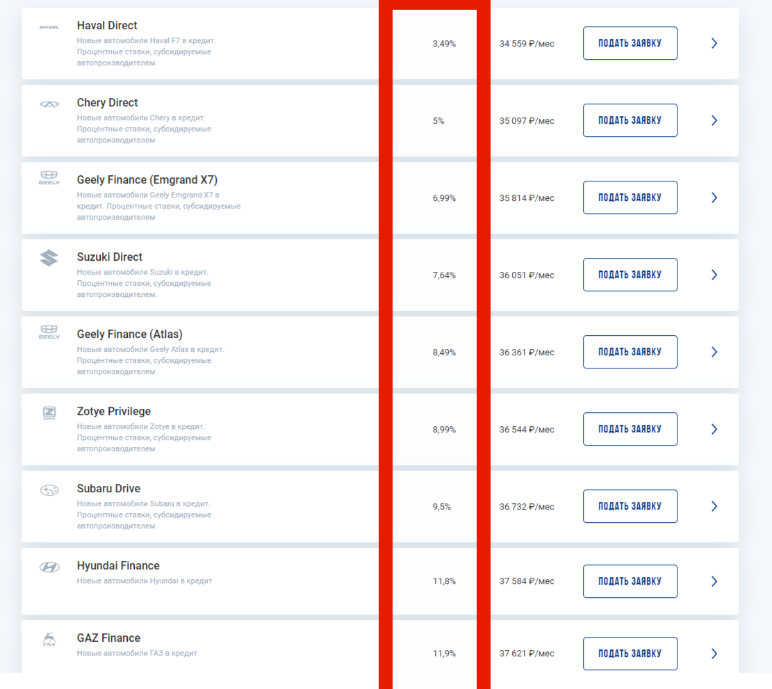 Как уже отмечалось выше, для различных программ автокредитования процентная ставка может существенно отличаться. При этом окончательно утверждённая процентная ставка зачастую больше минимально допустимой по той или иной программе. Однако есть и общие критерии для всех кредитных предложений, влияющие на значение ставки. В частности, она зависит от таких критериев: