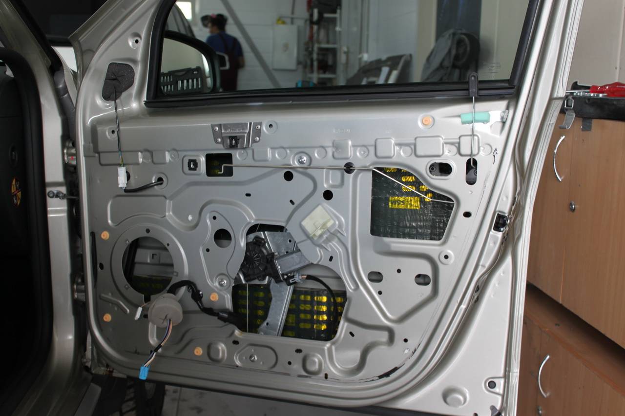 Нанесение вибропоглотителя на внутреннюю поверхность двери