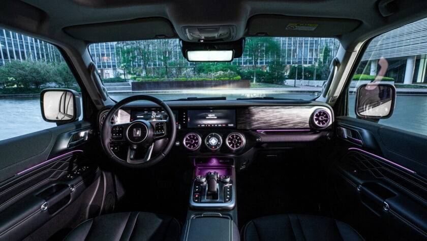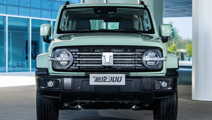 Tank 300 – первая модель марки, внедорожник с рамным кузовом по размерам (длина – 4760 мм) сопоставимый с Toyota Fortuner. Под капотом российской спецификации двухлитровый турбированный мотор (220 л.c и 387 Hm) и восьмиступенчатый “автомат”.