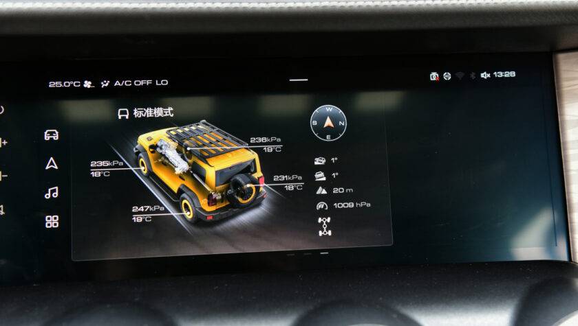 Полный привод у Tank 300 реализуется через электромагнитную муфту подключения передней оси, для лучшего прохождения бездорожья предусмотрена блокировка заднего и переднего дифференциалов и понижающая передача.