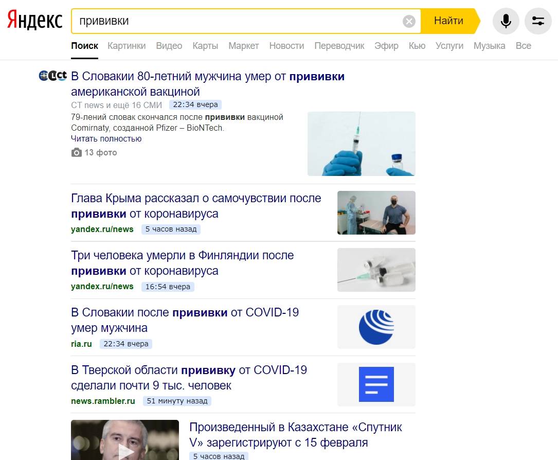 Новости в выдаче Яндекса