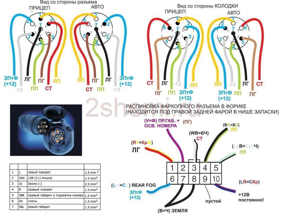 Вот схема розетки одного из российских фаркопов. Многие другие сделаны по точно такому же принципу.