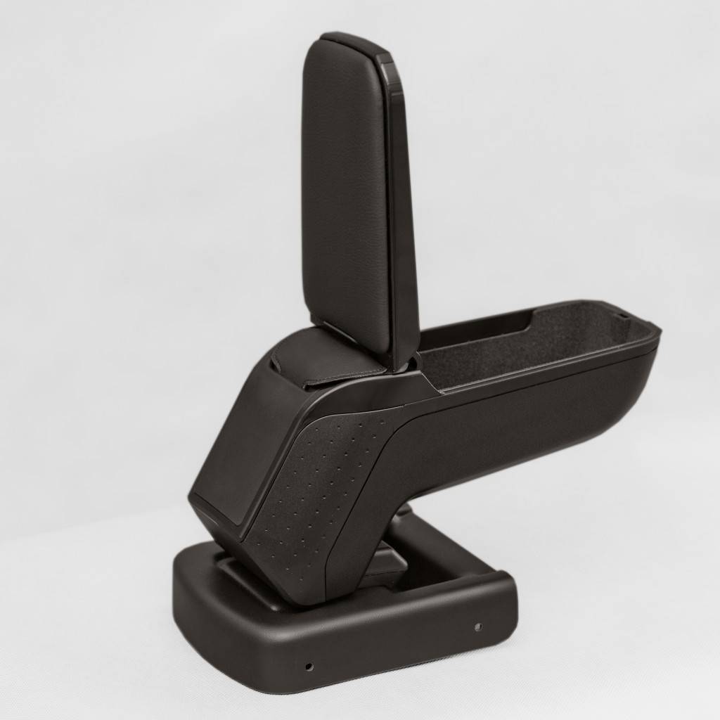 Этот вариант изделия может быть исполнен в более функциональной форме, когда внутри образован бокс для поклажи. Доступ осуществляется путем открывания крышки. В данном направлении преуспела фирма «Armster». Для монтажа потребуется обзавестись пластиковым переходником, который выполнен с прицелом на адаптацию к конструктивным аспектам Лада Ларгус. Изделие подлежит фиксации посредством саморезов. Подлокотник оборудован механизмом, позволяющим регулировать высоту, предел которой достигает угла в 100 градусов.