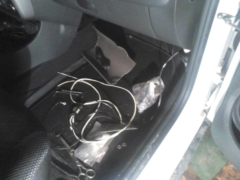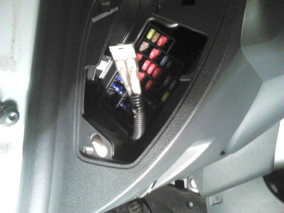 Провода идущие к блоку предохранителей лучше всего протягивать под обивкой за центральной консолью.