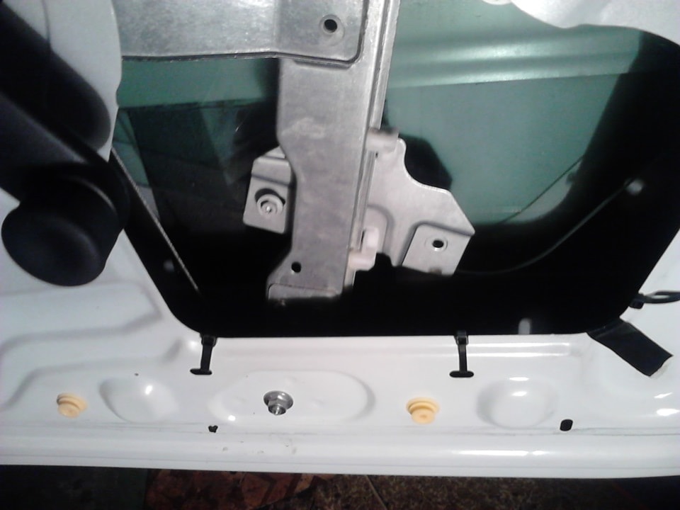- Устанавливается электрический привод подъема стекла, который фиксируется двумя крепежами – сверху и снизу.