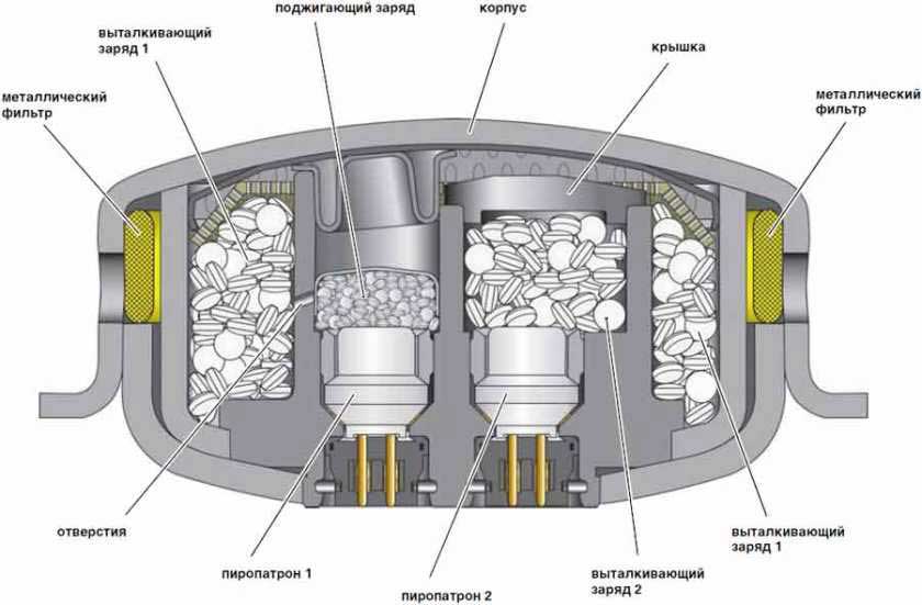 - Неисправность пиропатрона, возможно, из-за превышения лимита его эксплуатации, который чаще всего составляет 10 лет;