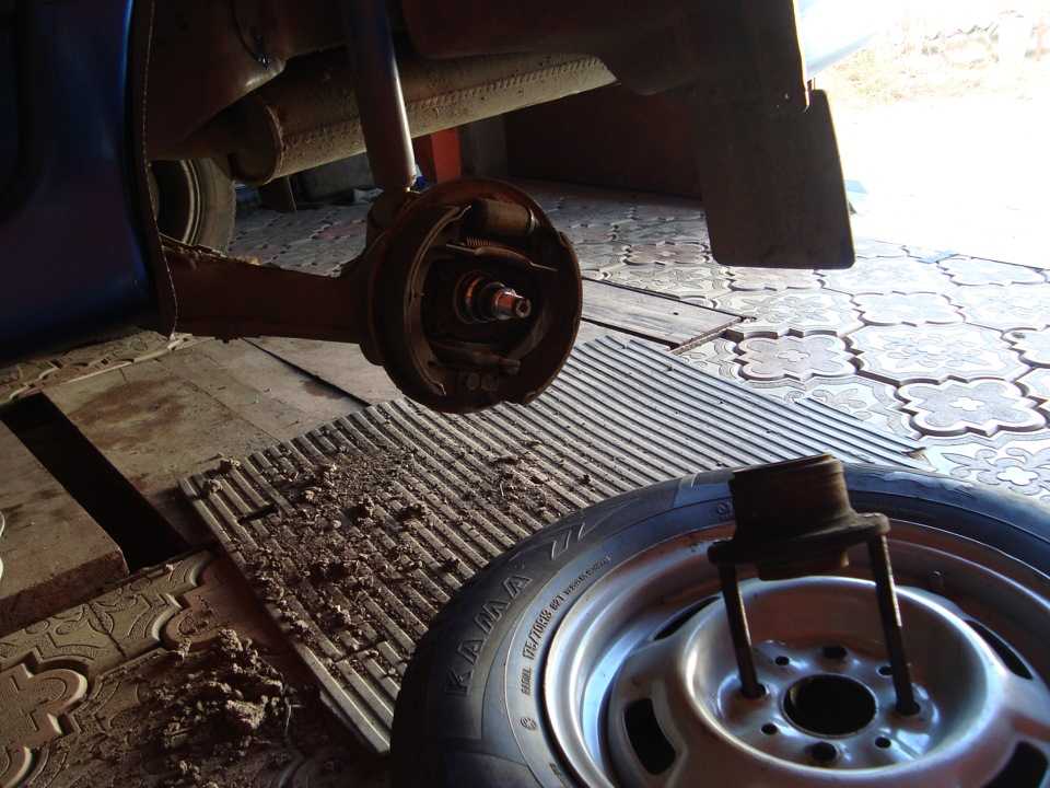 В процессе ремонта необходимо поддерживать натяжение тормозных тросов, идущих к рычагу в салоне. Если передний кончик привода соскочит с направляющей, то потребуется разобрать центральную консоль, установленную между сиденьями. На полу кузова имеется ниша, в которой установлена качалка с фиксаторами тросов. Для дополнительного удержания элементов можно использовать пластиковые хомуты для электропроводки.