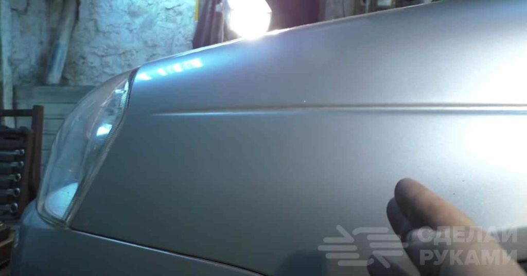 В конце можно осмотреть автомобиль с фонариком. Иногда могут остаться так называемые «голограммы» — это разводы на кузове, которые сильно бликуют. Они особенно заметны на темных цветах кузова и при ярком освещении. Для устранения такого эффекта используйте мелкоабразивную пасту и мягкие полировальные круги.