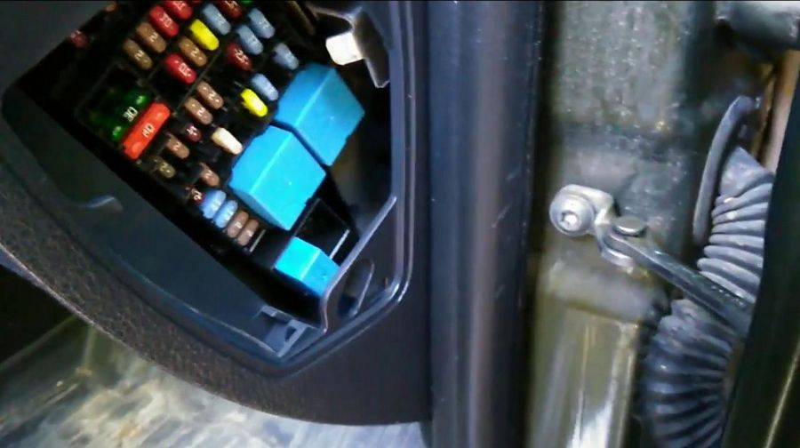 Блок закрыт защитной крышкой из пластика, которая демонтируется после отжима двух фиксаторов. Схема состоит из плавких вставок и реле.
