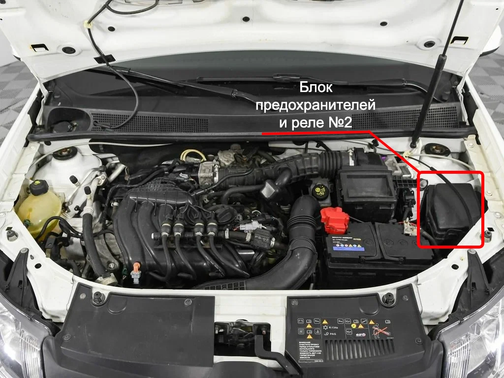 Предохранители и реле Рено Логан (с 2014 года) в моторном отсеке