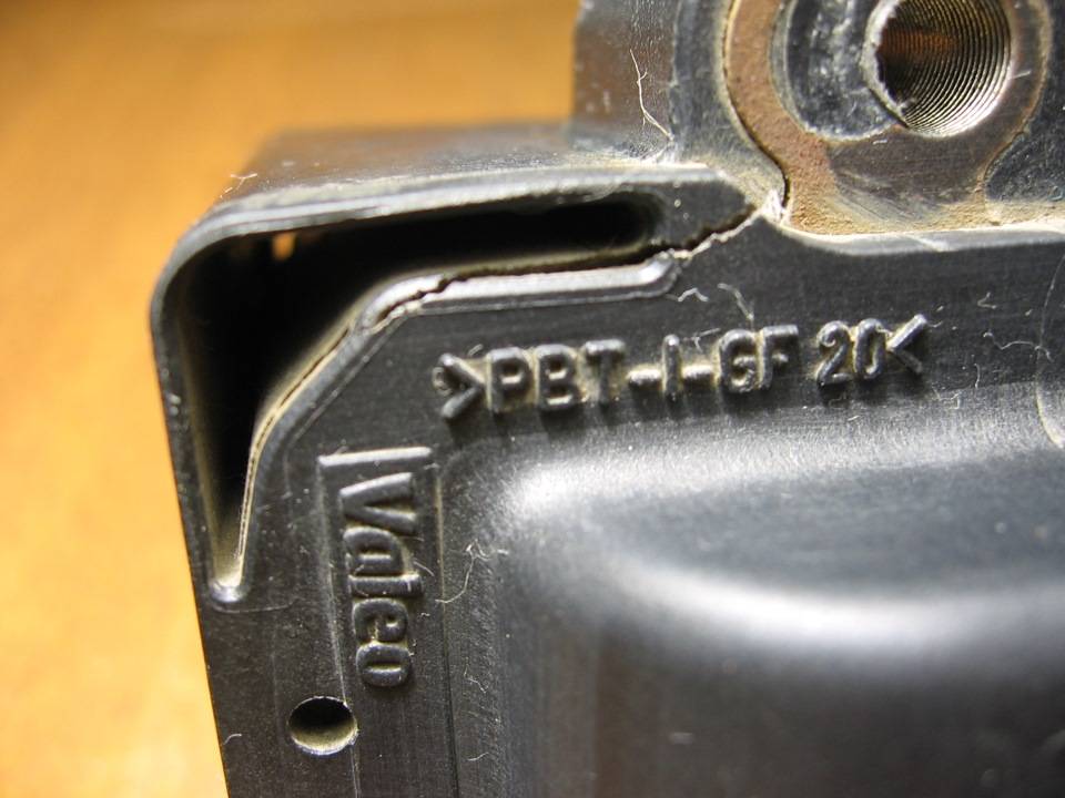 Копейка рубль бережёт, поэтому решил сначала попробывать решить проблему сам, благо трещины пока ещё не такие большие. Чтение форумов сводилось к мысли о том, что трещины появляются из за неудачного расположения катушки близко к горячему двигателю. Народ советует её поднять повыше и заодно на всякий случай подложить какой нибудь теплоизолирующий материал.