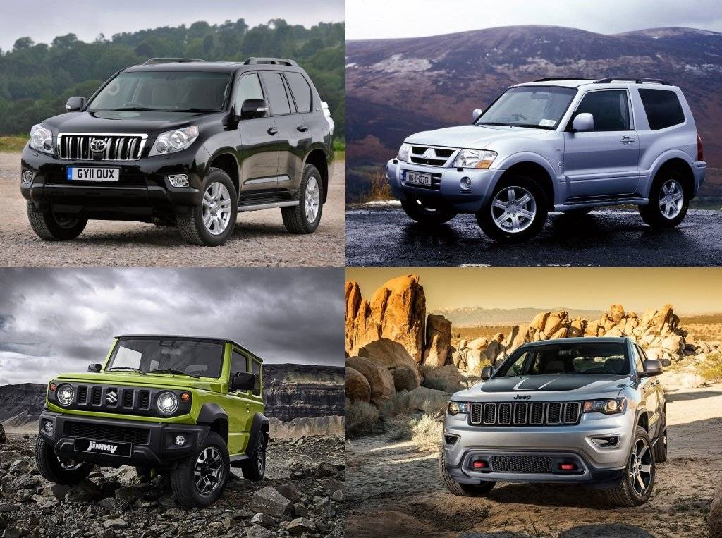К наиболее узнаваемым внедорожникам относятся Toyota Land Cruiser, Mitsubishi Pajero, Suzuki Jimny и Jeep Grand Cherokee