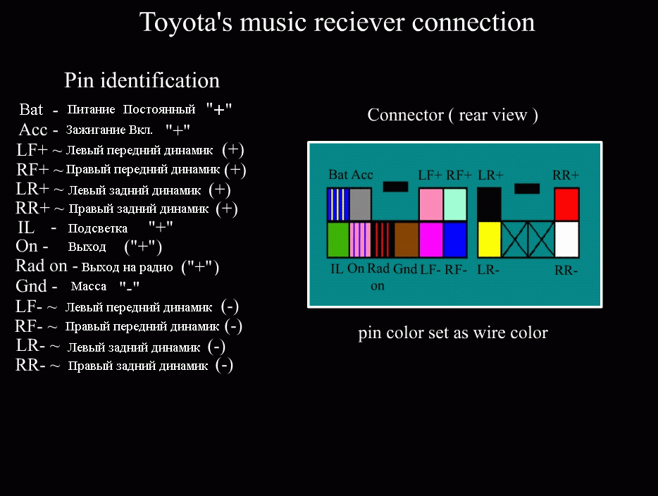Цвета проводов магнитолы тойота