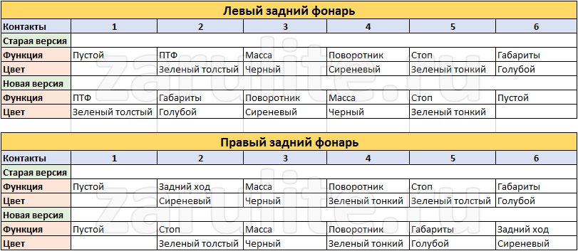 - 2 – противотуманка, зеленый тонкий – взамен контакта с задним ходом;