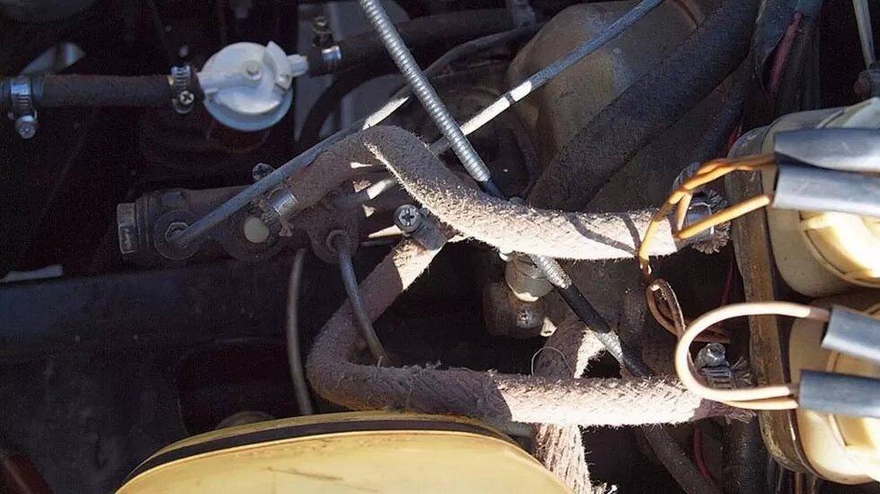 Вынимаем трос из двух пластмассовых держателей на топливном баке…