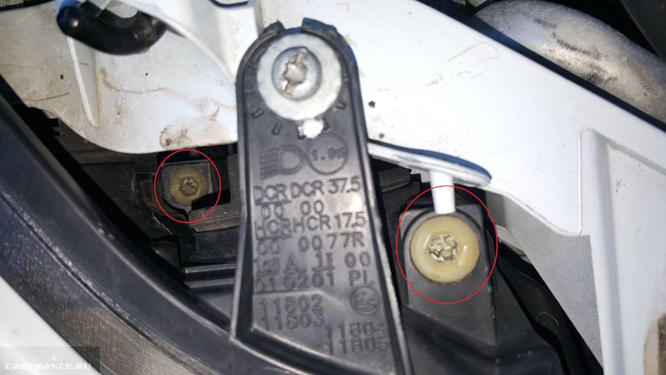 На фото показана левая фара. Регулировочные винты на правой фаре расположены симметрично.
