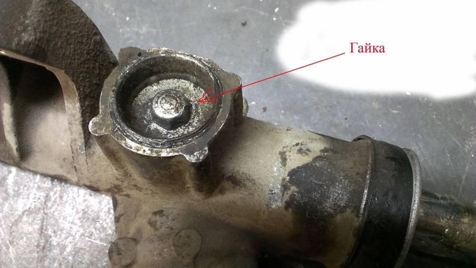 Давайте посмотрим, как выглядит механизм рулевой рейки вживую. Гайка расположена под стрелкой (см. фото).