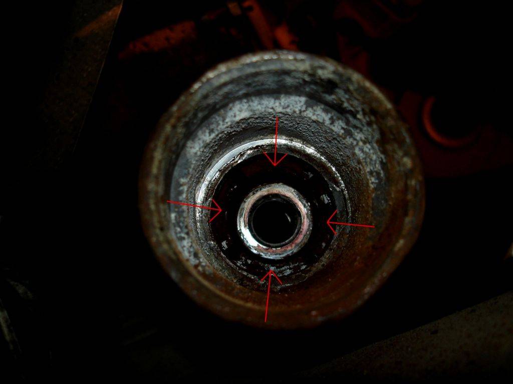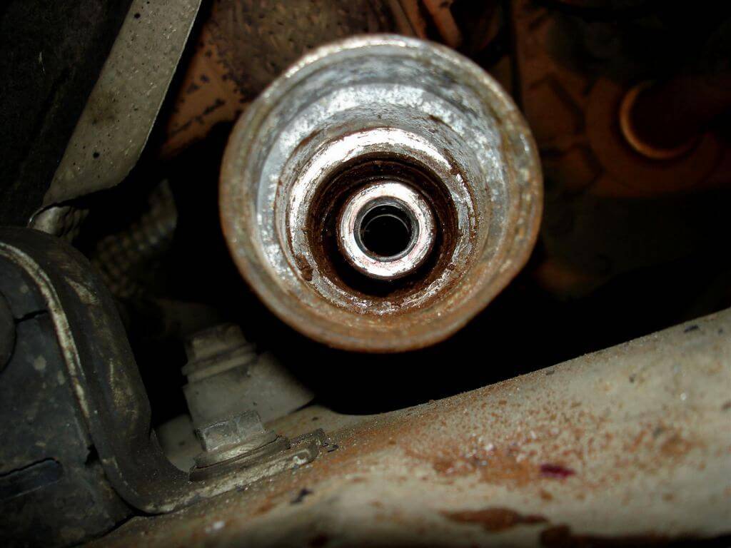 Выемка в гайке будет закрыта пробкой, резиновой или пластиковой. Пробку надо удалить.