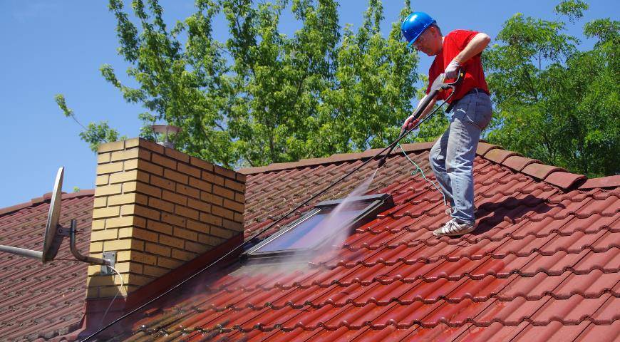 Очистка кровли мойкой высокого давления