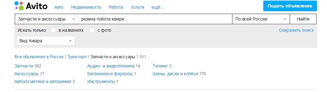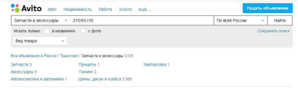 Самый популярный сайт по поиску резины, как ни странно – Авито.