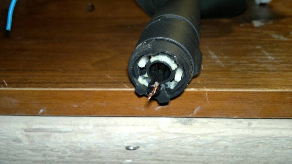 Из контактного штыря выпаиваем провода и выбрасываем их куда подальше. Ибо посмотрев на них понимаем, что евреи-монтажники использовали вместо медных проводов, провода сталистые, которые хрупкие и которые плохо поддаются пайке. Вместо них используем медные провода сечением 0,5 кв. мм.Продеваем их в отверстия и припаиваем к освободившимся контактам. Так как у меня не было подходящих по цветам проводов, я воспользовался обычным бытовым проводом. Синий соответственно был вместо черного, коричневый — вместо красного. После припаивания проверил тестером на наличие КЗ. Ибо расплавленное олово могло повредить пластиковую изоляцию контактных пластин.После припаивания начинаем собирать в обратно порядке
