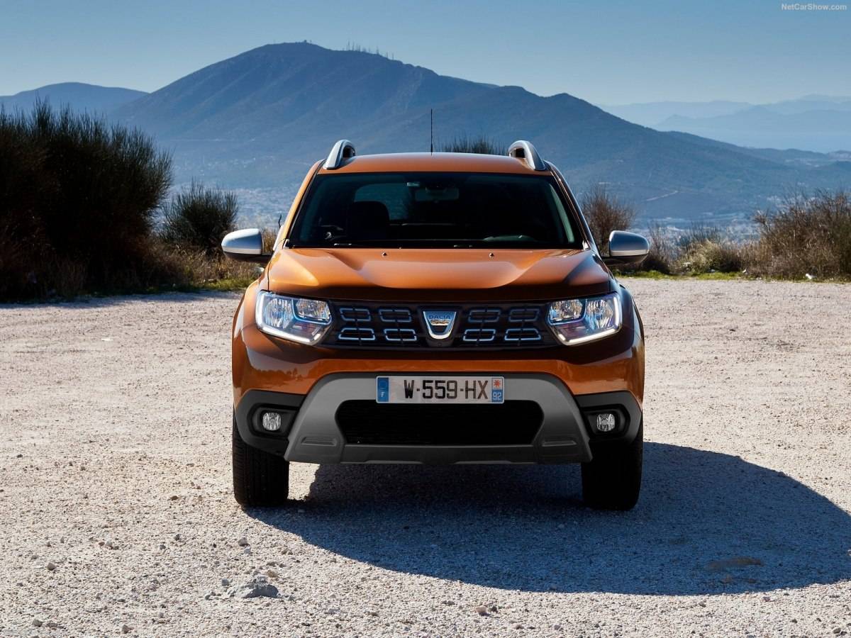 Внешне Dacia Duster заметно отличается от «российского» Дастера. Прежде всего, это касается особенностей оформления радиаторной решетки. У первой модели она «заполнена» несколькими металлическими прямоугольниками, которые обрамляют фирменный значок румынской марки. По бокам от радиаторной решетки установлены стандартные для этого кроссовера галогенные фары, разделенные на 3 секции. Передний бампер дополняется большой пластиковой вставкой, внутри которой размещен воздухозаборник, и компактными «противотуманками».