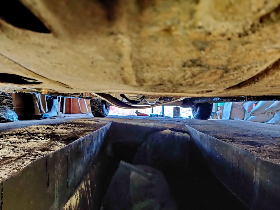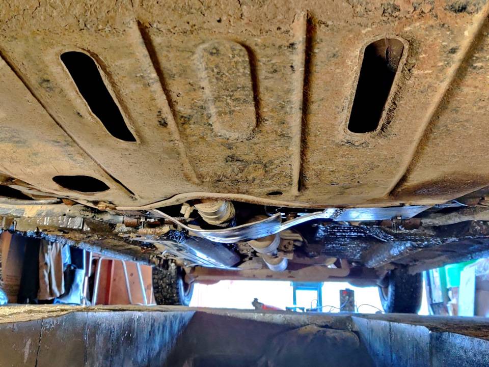 Нежданчик, который я не учёл! Это место выхлопной системы является самым низким от земли, плюс гофра толще, чем труба и её, получается, очень легко повредить на нашем бездорожье. Пришлось кумекать.В гараже были остатки металла, обрезки листов толщиной 4 мм. Из них соорудил защиту.