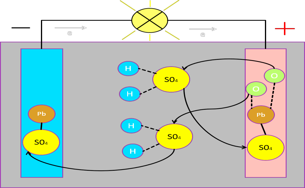 Рисунок 1 – Принцип работы свинцово-кислотного аккумулятора