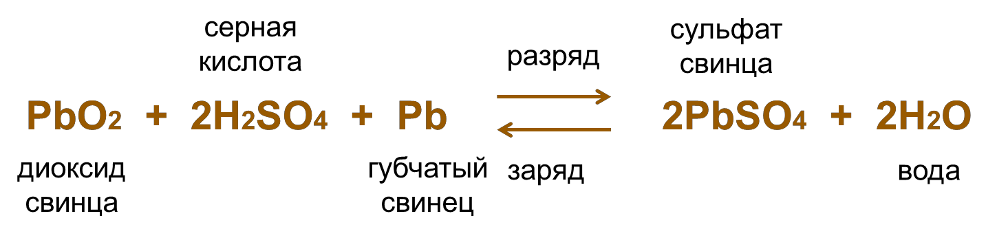 Химическая реакция, протекающая в аккумуляторе описывается следующим уравнением: