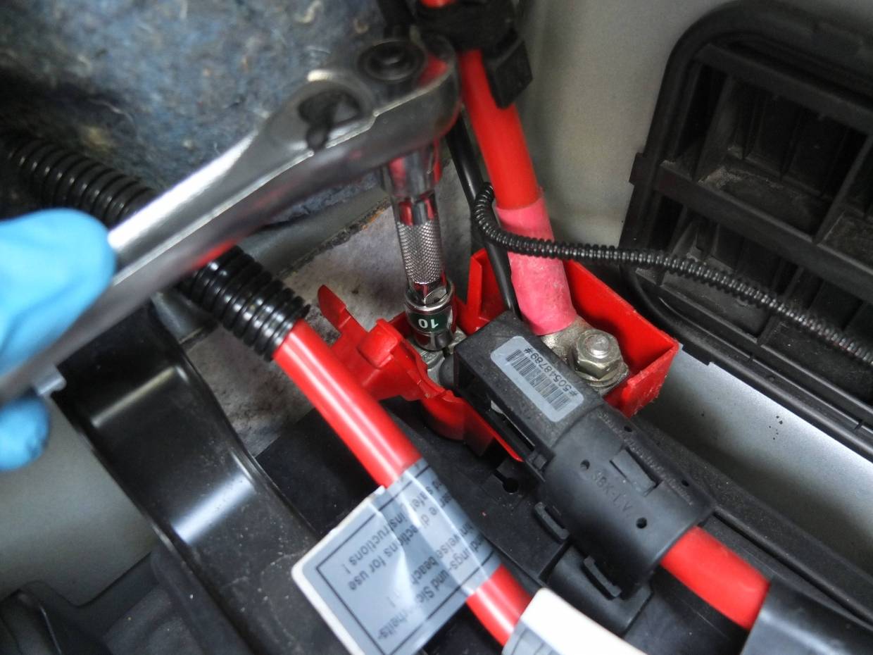 На положительной клемме аккумулятора может быть предохранитель PYRO, который отключит положительный в случае аварии. Если ваш автомобиль оснащен аккумуляторным терминалом безопасности, замените его после аварии.
