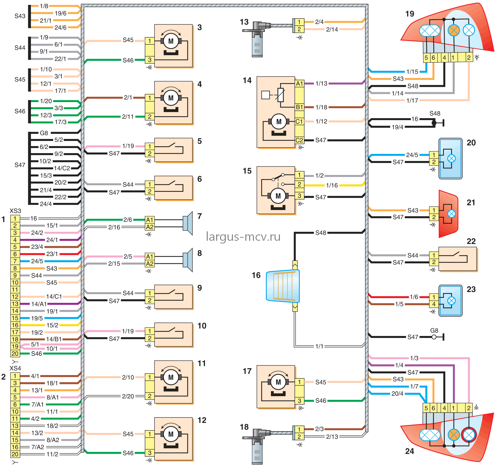 Схема электропривода зеркал Renault Logan 1 — блок предохранителей в салоне; 2 — блок управления наружными зеркалами заднего вида; 3 — электропривод левого наружного зеркала заднего вида с обогревом; 4 — электропривод правого наружного зеркала заднего вида с обогревом. Реле же коммутируют высокие токи в защитном кожухе распределительного щитка, что также в разы снижает вероятность возгорания.