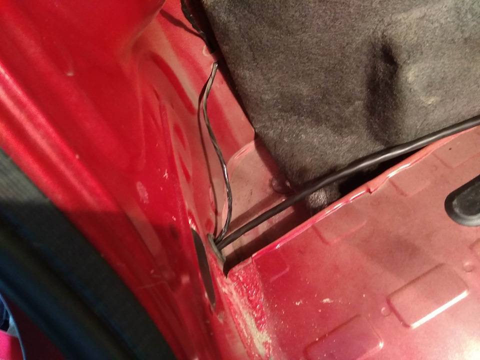 - проводка заводится в багажник и аккуратно прячется там;