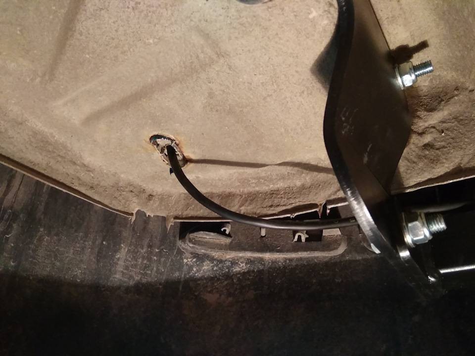- Для этого убирается запаска, а под обшивкой находится отверстие для проводов. Его закрывают пластиковой заглушкой;