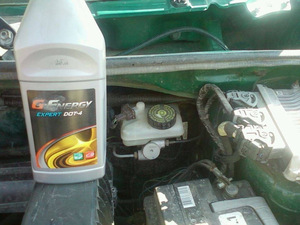 1). Проверяем уровень тормозной жидкости в бачке и в случаи необходимости доливаем.