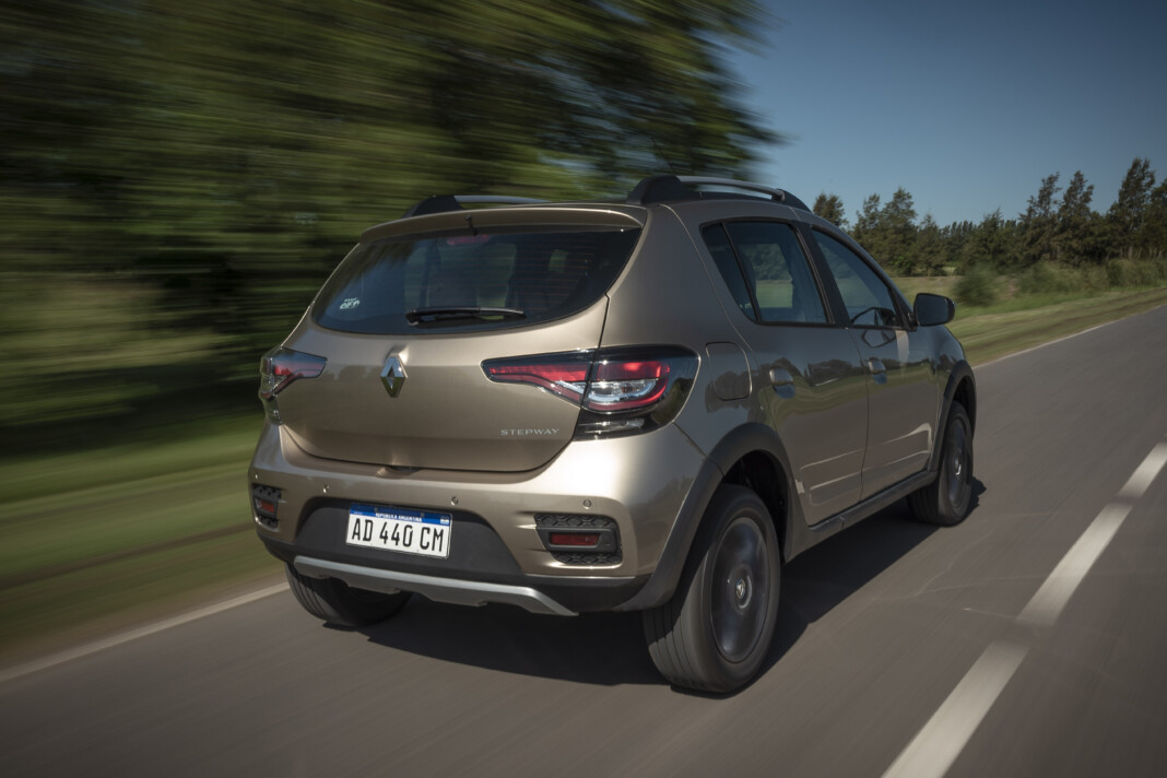 Сзади изменения, которые позволяют воспринимать автомобиль по новому. Бампер больше не является цельной конструкцией, как в прошлых модификациях Renault Stepway. Теперь задний бампер, как и передний, представляет собой три зоны – верхний элемент окрашен в цвет кузова, средняя часть из серого пластика. Нижняя деталь сделана в виде фактурной формы, которая несет защитную функцию. Дверь в багажный отсек увеличилась, улучшив процесс погрузки/разгрузки.