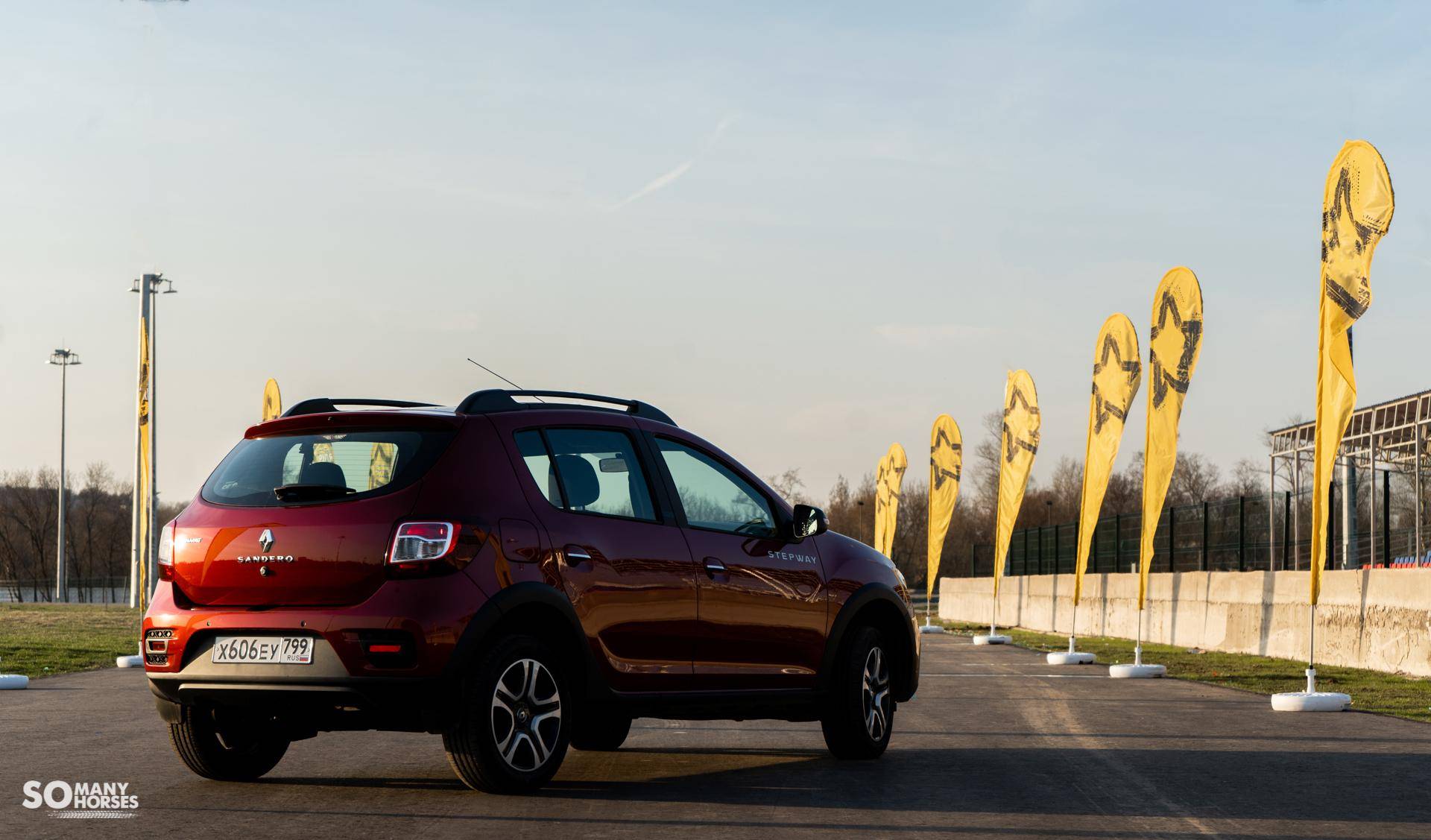 Когда мы с менеджером подошли к машине, я был приятно удивлен: вместо ожидаемого мной серого и непримечательного авто я увидел яркую машину, имеющую не только выделяющийся красный цвет кузова, но и современный дизайн. Наполненный яркими эмоциями, которых вовсе не ждал. Я сел за руль машины, и с этого момента началось мое знакомство с новым Renault Sandero Stepway.