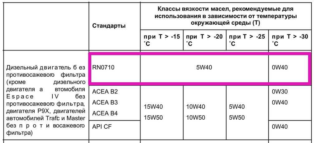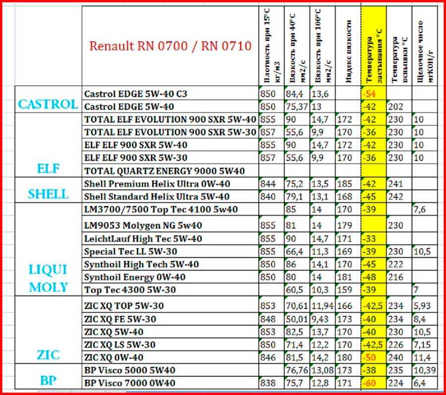 Температуры застывания некоторых марок моторных масел, которые используются на Рено Дастер, показаны ниже.