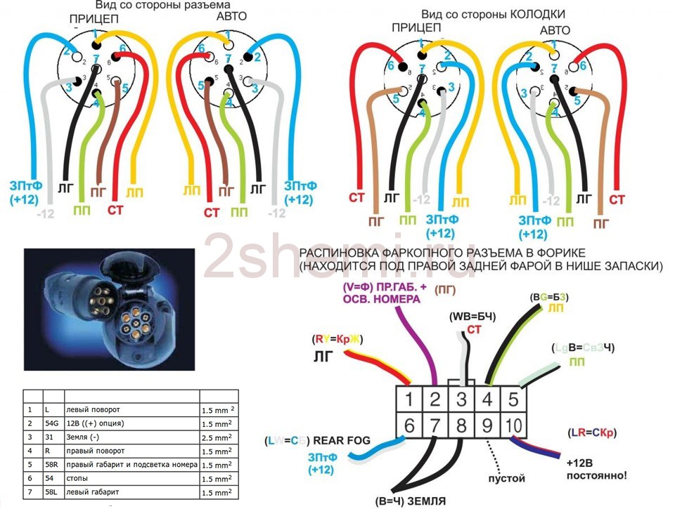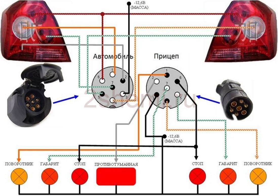 Распиновка розетки прицепа легкового автомобиля – схема подключения фаркопа