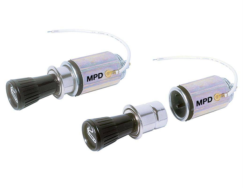 Эти «беспроводные» автомобильные зажигалки состоят из двух частей: цилиндрической розетки, которая обычно находится в приборной панели автомобиля, и съемной вилки. Розетка подключена к источнику питания и заземлению, а вилка содержит спиральную биметаллическую полосу.