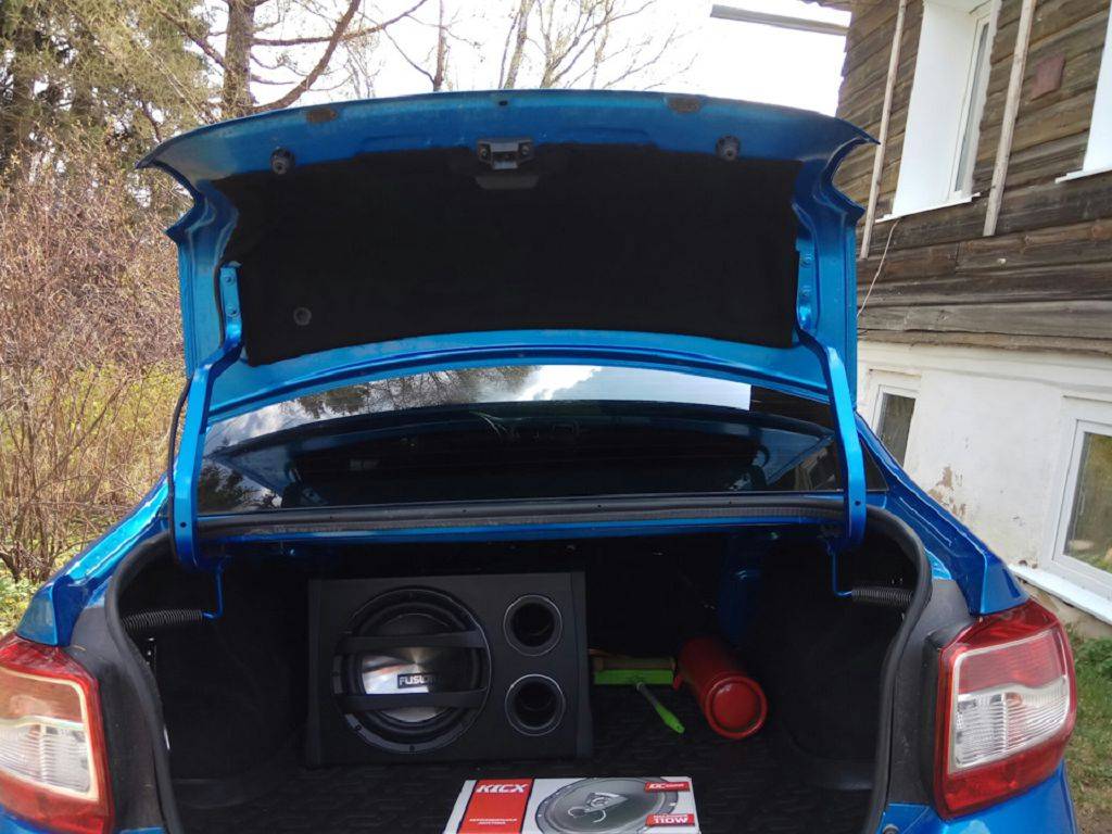 Кроме того, можно заменить заводские динамики на более мощные аналоги. Для комфортного прослушивания музыки в небольшом салоне Логан вполне хватит двух качественных динамиков спереди и сабвуфера средней мощности в багажнике, тем более пространство багажного отсека позволяет установить его и оставить много свободного места.