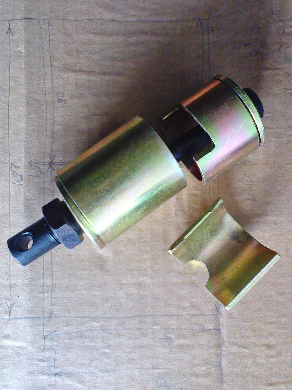 Поместив рычаг на верстаке, нужно поставить новую шаровую. Под пыльник забить смазку. Для забивания рекомендуется использовать трубу, на которой выбивали старую деталь.
