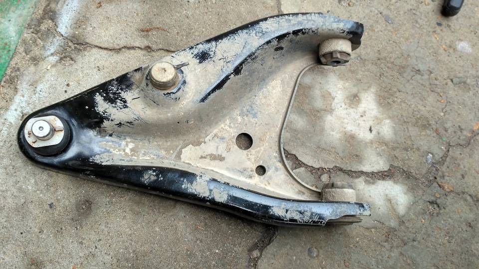 - откручиваем рычаг, который идет к подрамнику, извлекая шаровую опору;