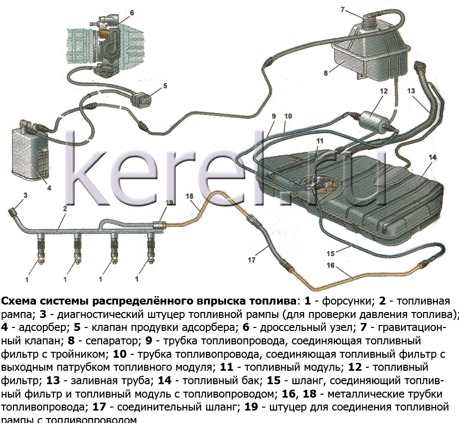 Работает инжекторная система питания так: при повороте ключа зажигания в работу включается бензонасос, заполняя всю топливную составляющую бензином. При включении стартера, в цилиндры начинает засасываться воздух.