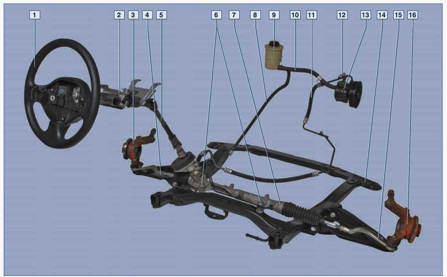 Элементы рулевого управления автомобиля с гидроусилителем руля: