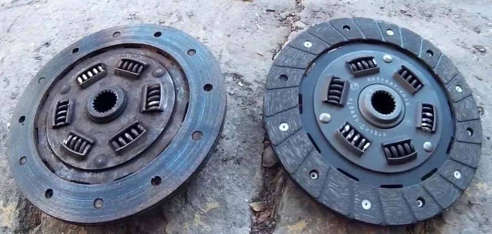 - пробуксовка (двигатель вращает маховик быстрее, чем тот корзину) — изношены фрикционные накладки или масло попало на поверхность диска;