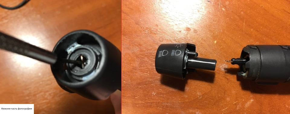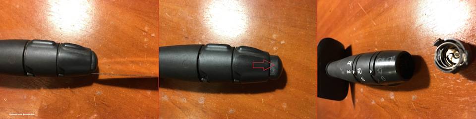 Затем нужно снять часть подрулевого переключателя отвечающего за включение габаритов и фар.