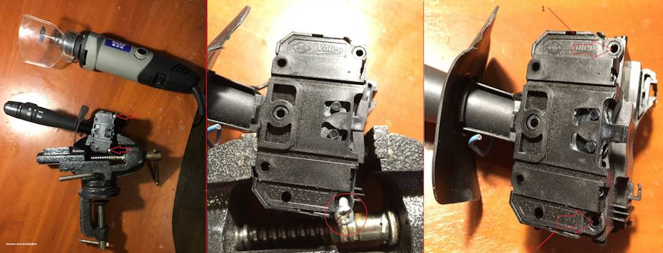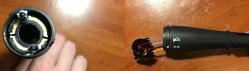 — при сборке установку рычага в маханизм (шаг 10 этой записи) я выполнял в автомобиле. Получилось собрать в следующем положении:—- механизм: свет выкл;—- механизм: правый поворотник вкл;—- рычаг: свет выкл;—- рычаг: правый поворотник вкл.В положении выключенного поворотника рычаг вставлялся в механизм неправильно.