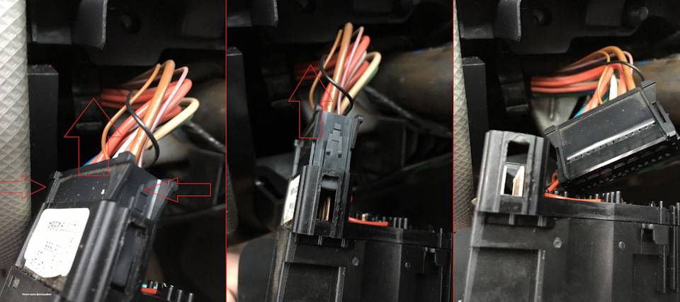 5. Извлекаем подрулевой переключатель из паза и опускаем его вниз