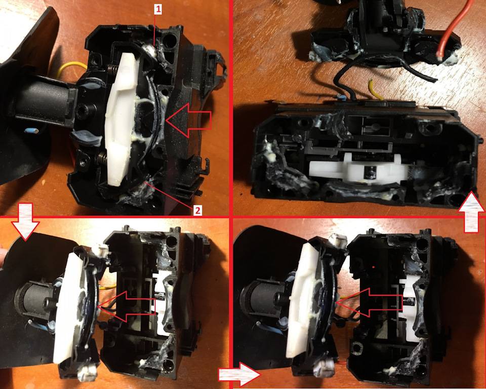 Наиболее частой причиной неисправности джойстика являются отпаянные от штыря контакты. Для извлечения штыря необходимо открыть корпус переключателя. Разобраться в том, как припаять элементы самостоятельно, не составит особого труда: нужно подготовить пару более гибких проводков, паяльник и припой. После припаивания сборка осуществляется в обратном порядке.